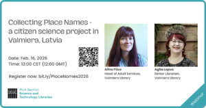 Die IFLA-Sektion für Wissenschafts- und Technologiebibliotheken freut sich, Ihnen am 16. Februar 2026 um 13 Uhr MEZ per Online-Webinar ein inspirierendes Citizen-Science-Projekt der Bibliothek Valmiera in Lettland vorstellen zu dürfen.